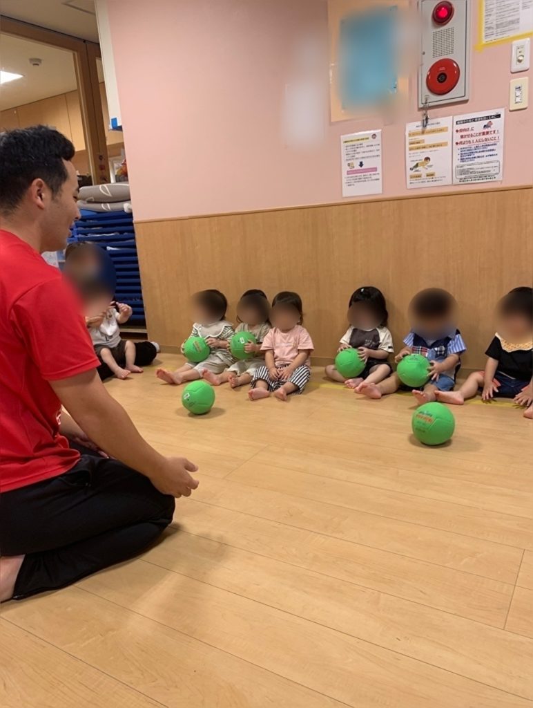 ボールを転がしたり、蹴ったりしました!まずは、ボールに慣れていきコロコロころがってきたボールをキャッチできるところまで頑張ります!