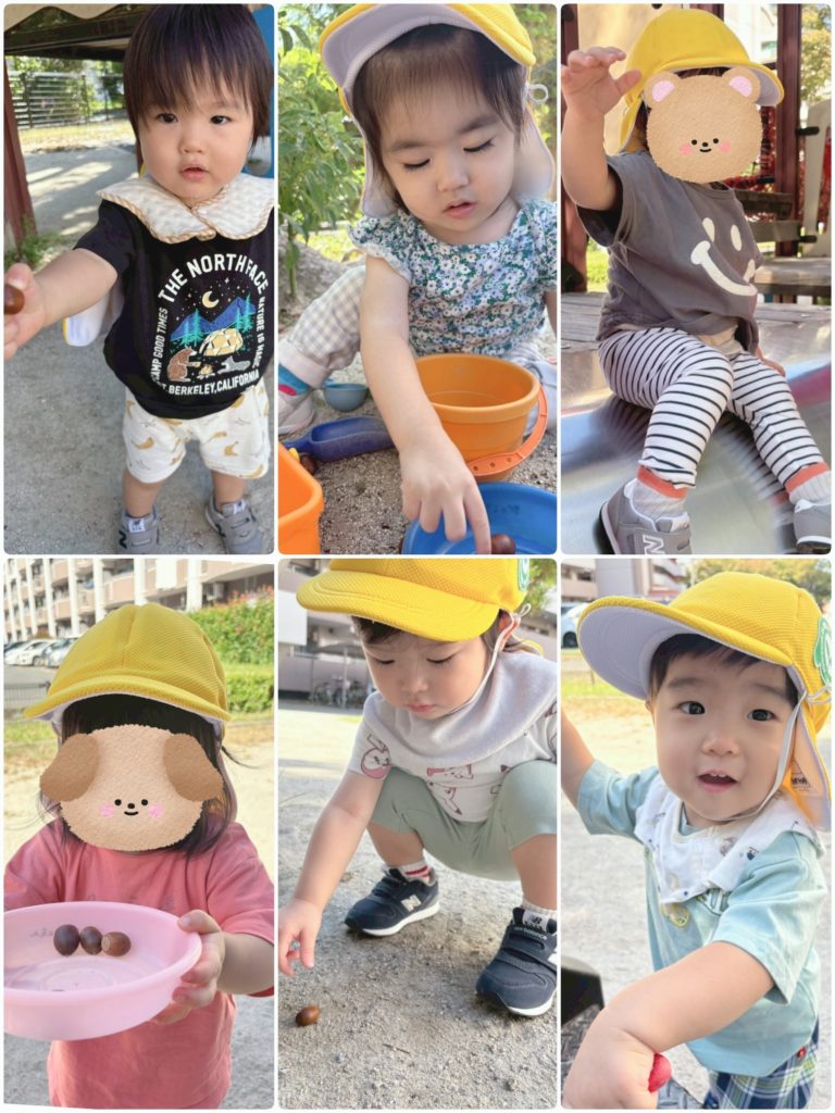 どんぐりを拾うと、嬉しそうにどんぐりを保育士に見せてくれます😊