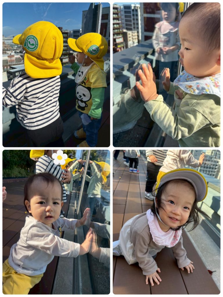 科学館にお散歩♪(ひよこ組🐤) 2025.11.13 保育 先日科学館の屋上に遊びに行きました! いつもとは違う場所に興奮していた子供たち! いつも歩いているところや道路など六本松の街を上から興味津々に見ていましたよー! バスや車などを見つけると「ブーブー!」「ばす!」と嬉しそうに見ていました! その後はお友達と一緒に「よーいどん!」と走ったりして楽しんでいました☺ PREV NEXT