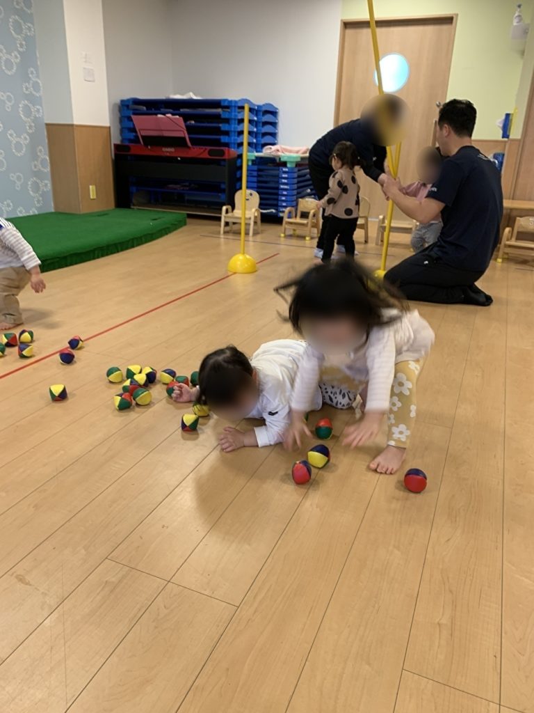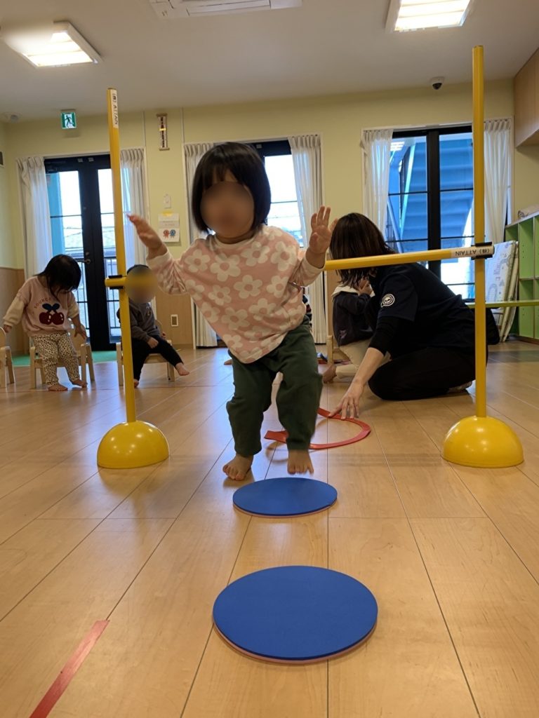 ポールを踏切に見立てて、急ぎながらボールを集めました!