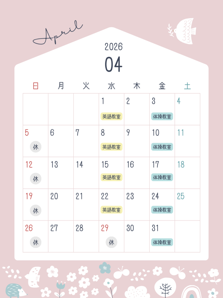 1か月のカレンダーも掲載しておりますので、行事や予定のご確認をお願いいたします。